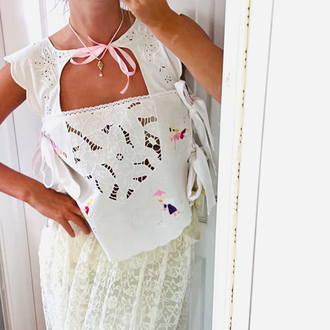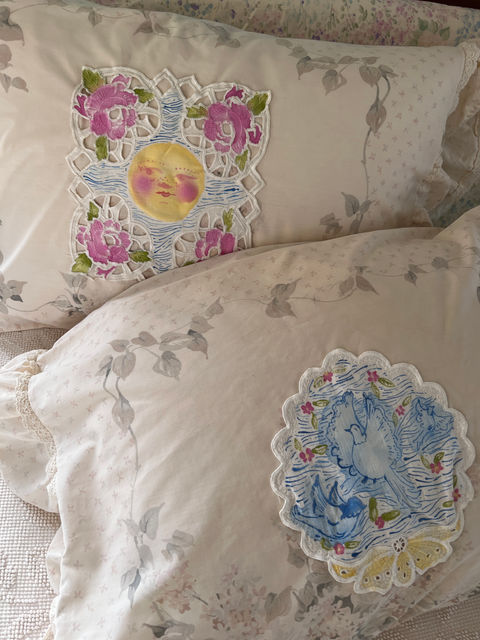 Soleil et Amis is a brand I launched in order to mitigate the textile waste I see in my community. Each piece has been sourced from places where they were destined for the landfill. Each painting I create on these pieces are emblematic of scenery and bits of life that bring me peace and hope. Pieces can be purchased at soleiletamis.com.